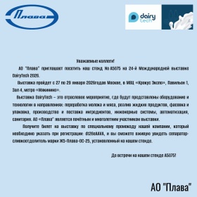 16 октября 2025 Итоги 30-й международной выставки «Агропродмаш-2025» АО «Плава» приняло участие в 30-й Международной выставке Агропродмаш-2025.